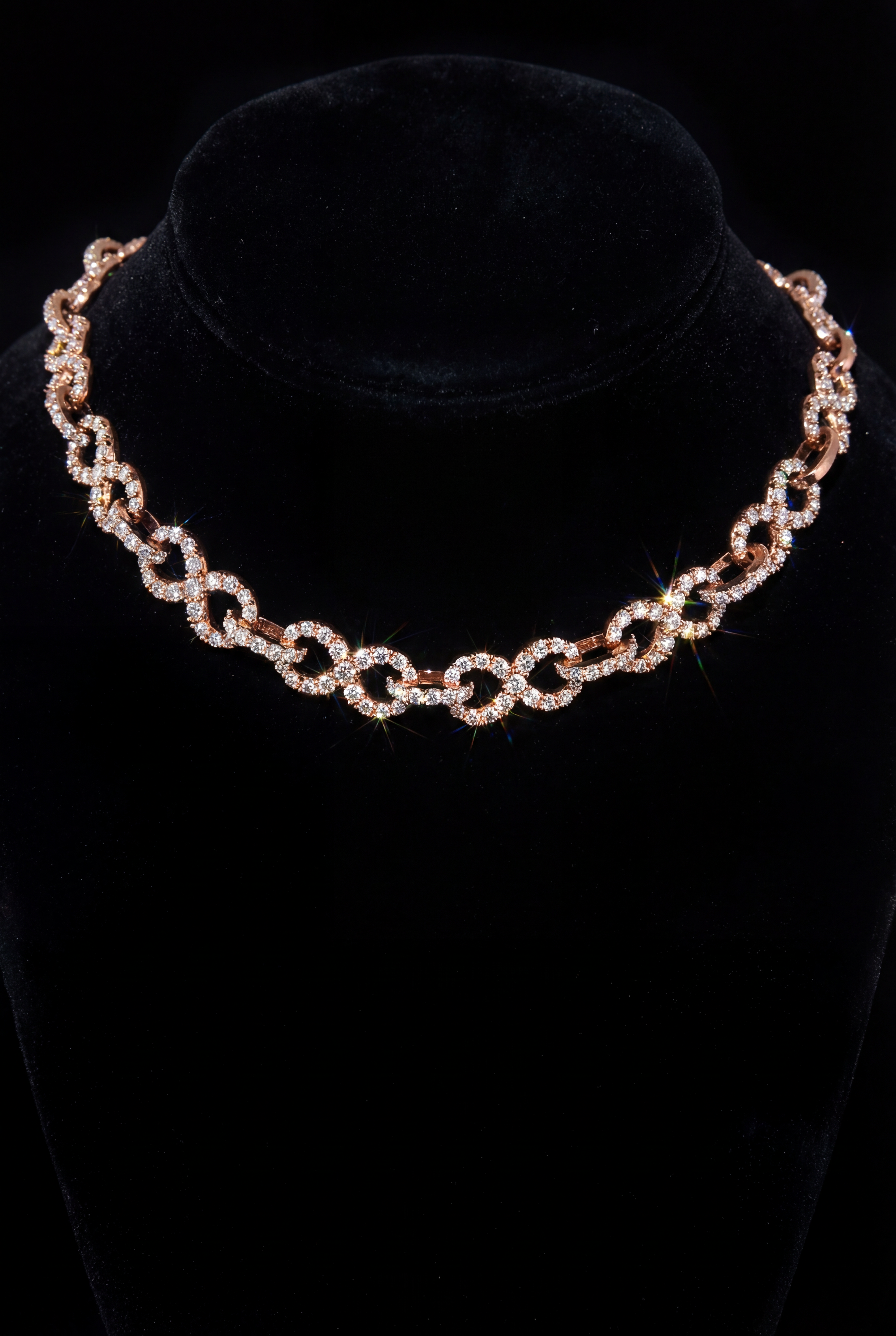 Rose Gold Diamond infinity Link Necklace – High-End Fully Iced Chain”