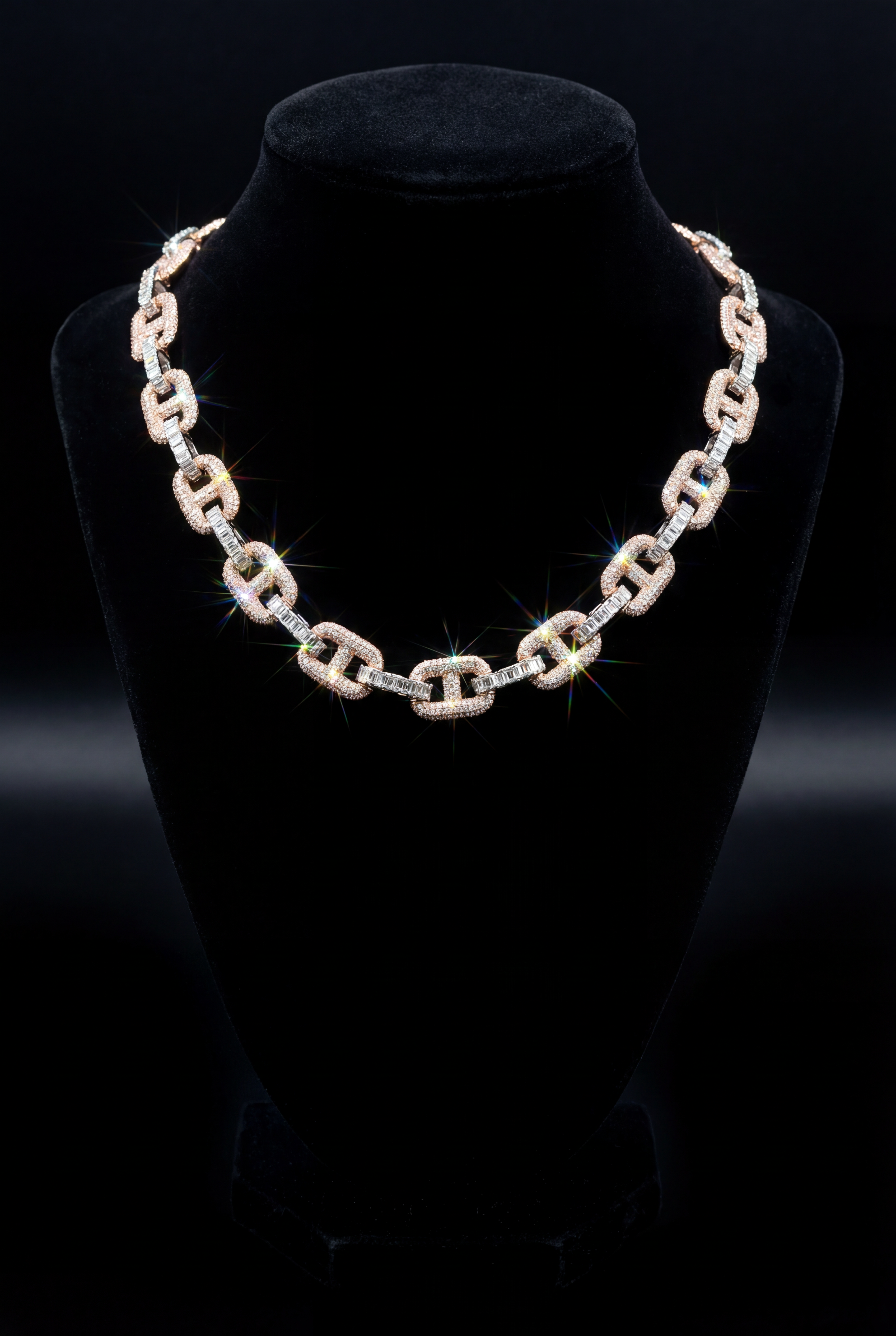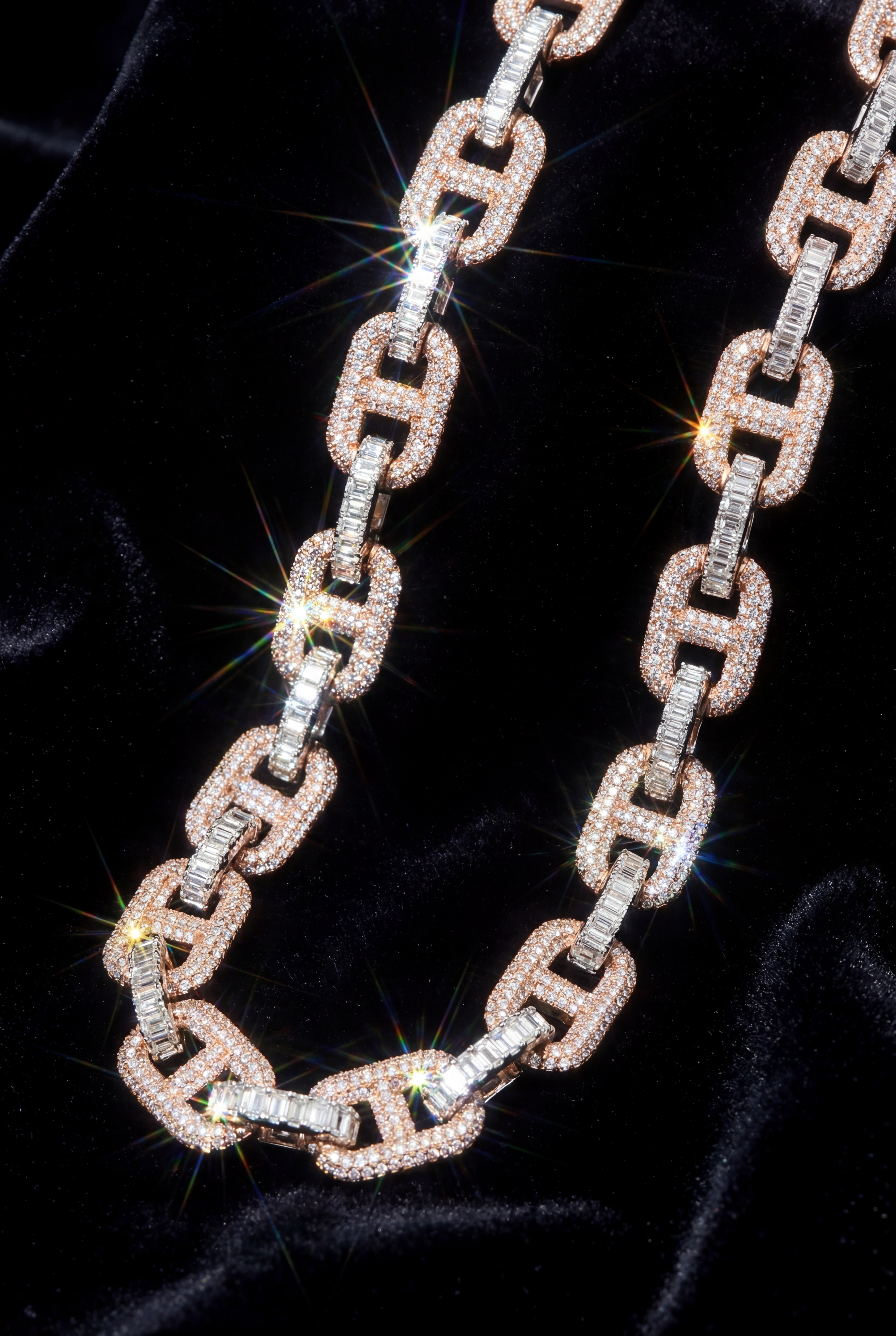 Rose Gold Iced-Out Diamond Link Chain – High-End Designer Necklace